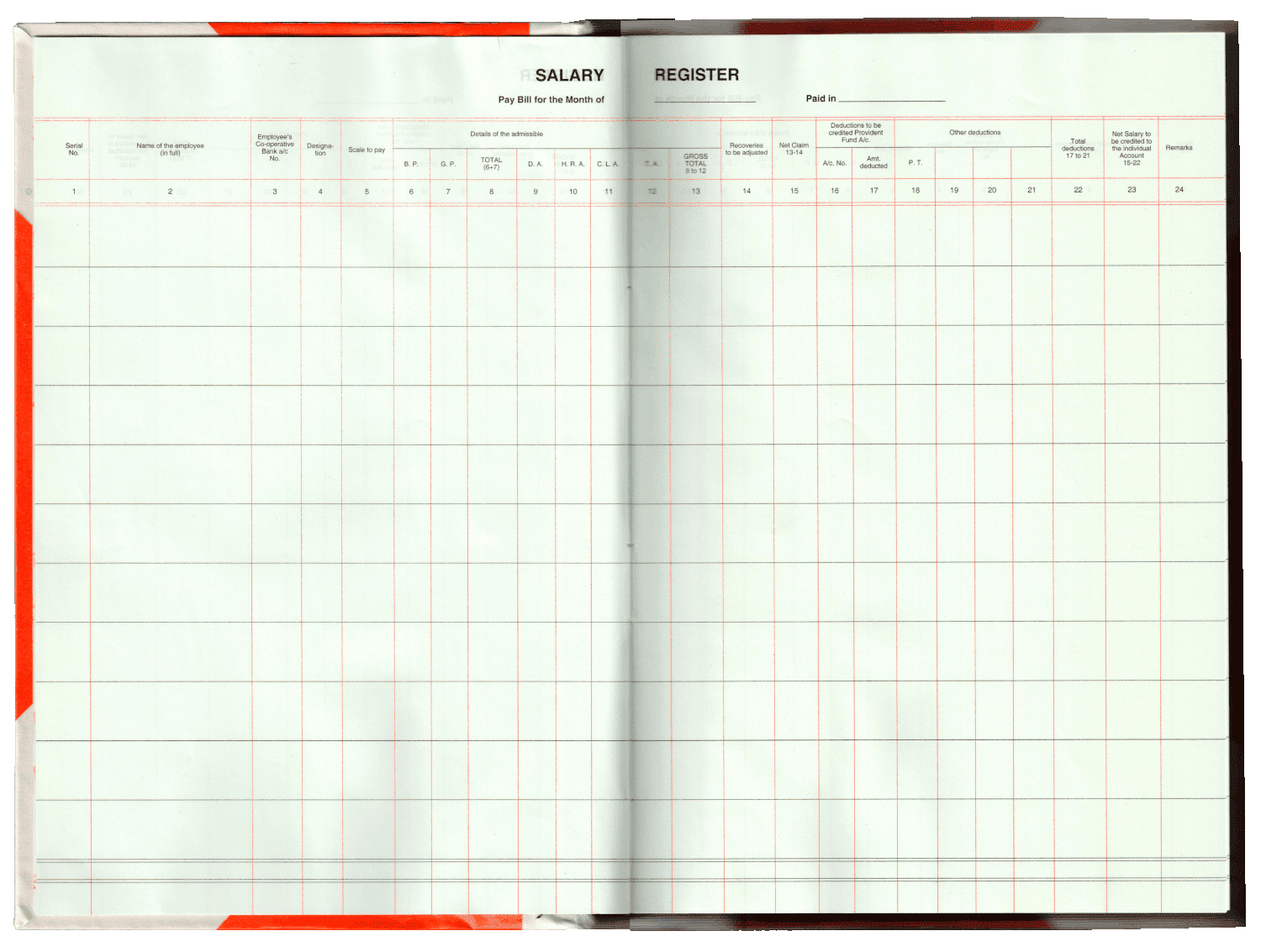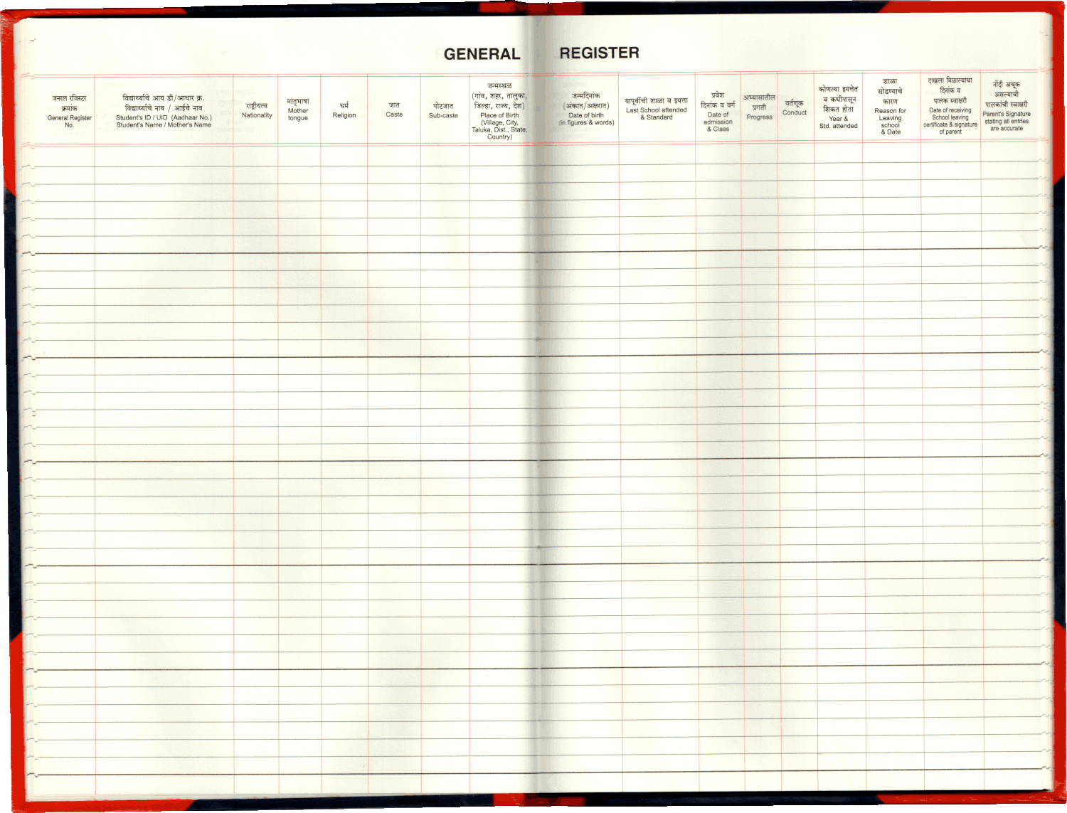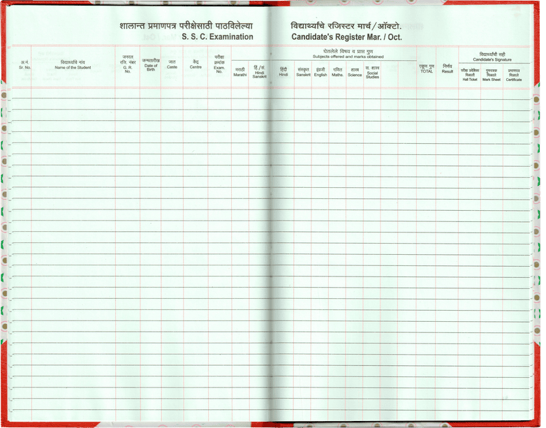 Registers Printing General Register ₹360 (72 Pages) ₹700 (144 Pages) ₹1050 (216 Pages) ₹1400 (288 Pages) Salary Register ₹360 (72 Pages) ₹700 (144 Pages) ₹1050 (216 Pages) ₹1400 (288 Pages) S.S.C. Candidates Register ₹260 (72 Pages) ₹500 (144 Pages) ₹750 (216 Pages) ₹1000 (288 Pages) Provident Fund Register ₹360 (72 Pages) ₹700 (144 Pages) ₹1050 (216 Pages) ₹1400 (288 Pages) Three Column Cash Book ₹260 (72 Pages) ₹500 (144 Pages) ₹750 (216 Pages) ₹1000 (288 Pages) Petty Cash Book ₹260 (72 Pages) ₹500 (144 Pages) ₹750 (216 Pages) ₹1000 (288 Pages) Ledger (Index) ₹285 (72 Pages) ₹550 (144 Pages) ₹825 (216 Pages) ₹1100 (288 Pages) Inward Register ₹260 (72 Pages) ₹500 (144 Pages) ₹750 (216 Pages) ₹1000 (288 Pages) Outward Register ₹260 (72 Pages) ₹500 (144 Pages) ₹750 (216 Pages) ₹1000 (288 Pages) Library Acession Register ₹260 (72 Pages) ₹500 (144 Pages) ₹750 (216 Pages) ₹1000 (288 Pages) Library Issue Register ₹260 (72 Pages) ₹500 (144 Pages) ₹750 (216 Pages) ₹1000(288 Pages) Dead Stock Register ₹260 (72 Pages) ₹500 (144 Pages) ₹750 (216 Pages) ₹1000 (288 Pages) Pay and Allowance Register ₹260 (72 Pages) ₹500 (144 Pages) ₹750 (216 Pages) (288 Pages) Teacher's Muster Roll ₹260 (72 Pages) ₹500 (144 Pages) ₹750 (216 Pages) ₹1000 (288 Pages) Pupil's Daily Attendance Register ₹260 (72 Pages) ₹500 (144 Pages) ₹750 (216 Pages) ₹1000(288 Pages) Pupil's Daily Attendance Register Half Size (72 Pages) ₹300 (144 Pages) ₹470 (216 Pages) (288 Pages) Daily Fee Collection Register ₹260 (72 Pages) ₹500 (144 Pages) ₹750 (216 Pages) ₹1000 (288 Pages) Fee Register ₹260 (72 Pages) ₹500 (144 Pages) ₹750 (216 Pages) ₹1000 (288 Pages) Fee Abstract Register ₹260 (72 Pages) ₹500 (144 Pages) (216 Pages) (288 Pages) Freeship Holders Attendance Register ₹260 (72 Pages) ₹500 (144 Pages) (216 Pages) (288 Pages) Head Master's Log Book Register ₹260 (72 Pages) ₹500 (144 Pages) (216 Pages) (288 Pages) Leave Application Register ₹260 (72 Pages) ₹500 (144 Pages) (216 Pages) (288 Pages) Roster Register ₹260 (72 Pages) ₹500 (144 Pages) ₹750(216 Pages) ₹1000(288 Pages) Science Register ₹260 (72 Pages) ₹500 (144 Pages) ₹750 (216 Pages) (288 Pages) Rulled Ledger Paper Register ₹200 (72 Pages) ₹400 (144 Pages) ₹600 (216 Pages) ₹800 (288 Pages) Stationery Register ₹260 (72 Pages) ₹500 (144 Pages) ₹750 (216 Pages) ₹1000 (288 Pages) Minute Book ₹260 (72 Pages) ₹500 (144 Pages) (216 Pages) (288 Pages) Delivery - Peon Book Register (72 Pages) ₹300 (144 Pages) (216 Pages) (288 Pages) Movement ( Halchal) Register ₹260 (72 Pages) ₹500 (144 Pages) ₹750 (216 Pages) ₹1000 (288 Pages) Register of Pupils Who Left School ₹260 (72 Pages) ₹500 (144 Pages) (216 Pages) ₹1000 (288 Pages) Leave Acount Register ₹260 (72 Pages) ₹500 (144 Pages) (216 Pages) (288 Pages) Visitor's Book (72 Pages) ₹300 (144 Pages) (216 Pages) (288 Pages)